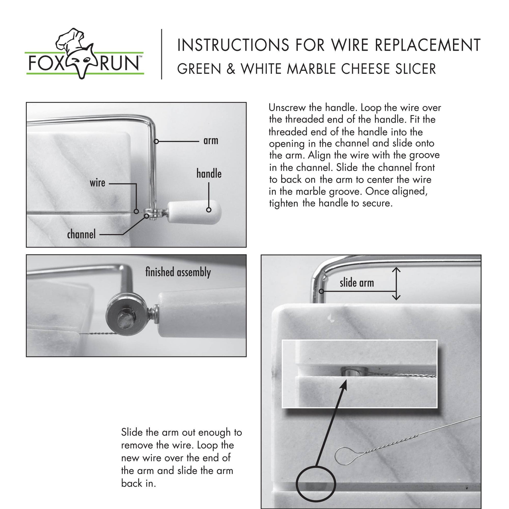 Fox Run Marble Cheese Slicer, 2 Replacement Wires, 8" x 5"